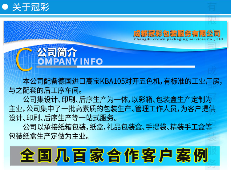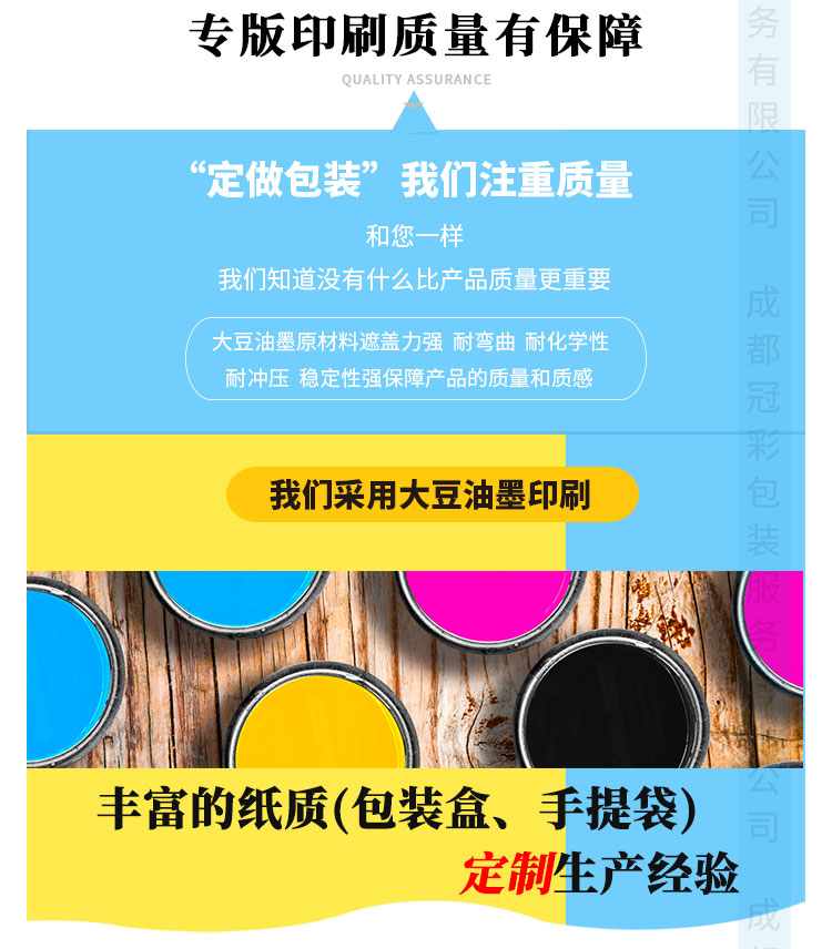 - 工艺:彩色印刷,覆膜,裱瓦,模切,粘成型,配手提绳